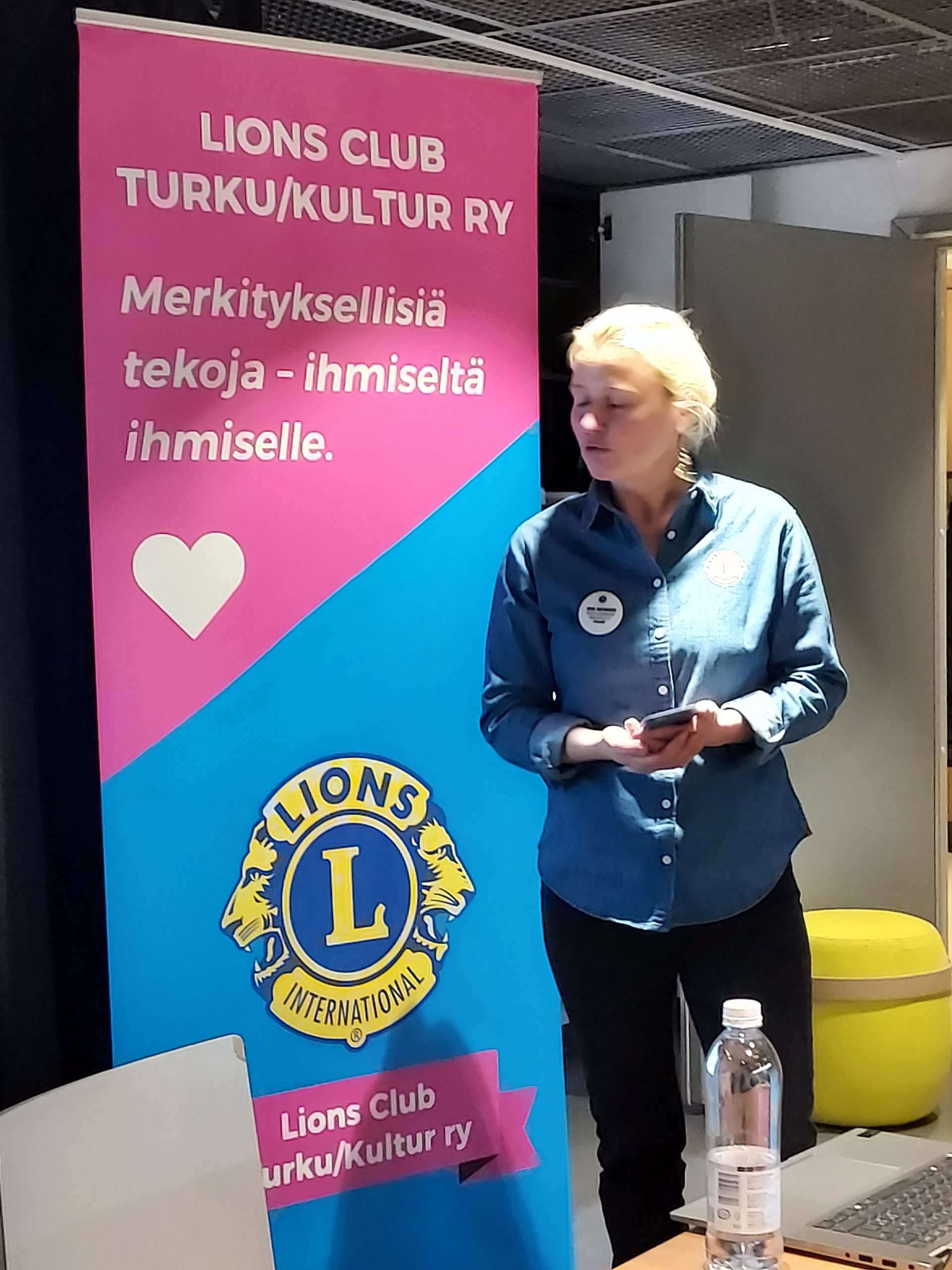 Kokouksen jälkeen Piirin palvelujohtaja Hannele Tanner-Penttilä kertoi meille Lions-palvelutoiminnasta, mm. siitä, että palvelutoiminta koostuu niin varainhankinnasta kuin itse palveluaktiviteeteista.