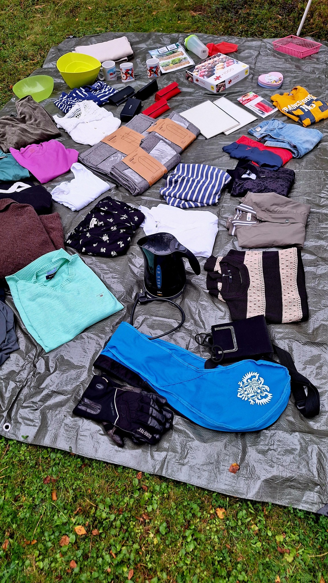 Anteliaat klubilaiset olivat lahjoittaneet myytäväksi runsaasti hyväkuntoista tavaraa, niin vaatteita, jalkineita, pelejä kuin kodin tarvikkeitakin, kiitos vielä kaikille, ja iloinen nelikko Kulturin naisia hoiti myyntipuolen.